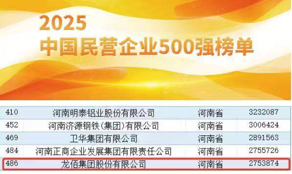 龙佰集团荣获“中国民营企业500强”等荣誉